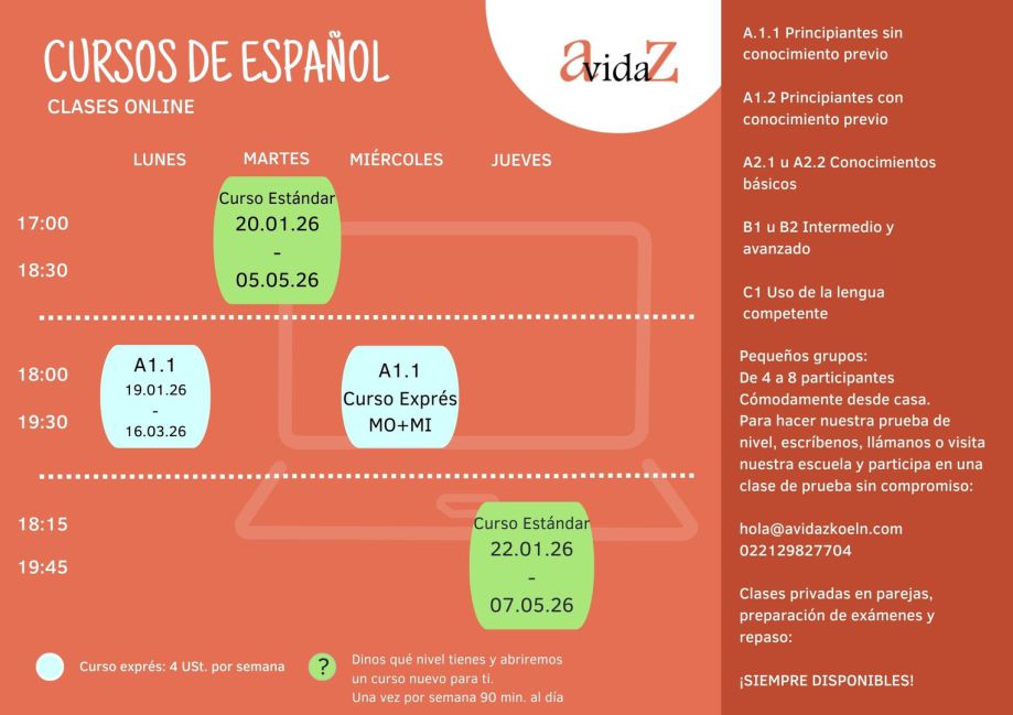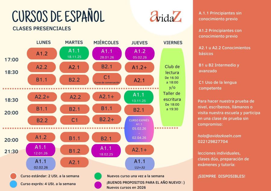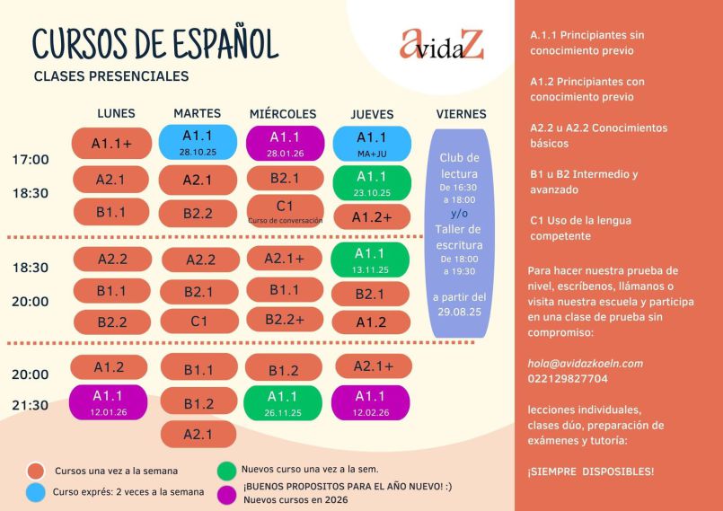 Para aprender español se necesita más que un buen libro. Ofrecemos cursos de español en los niveles A1, A2, B1, B2 y C1. Todos se basan en el Marco Europeo de Referencia para las Lenguas.